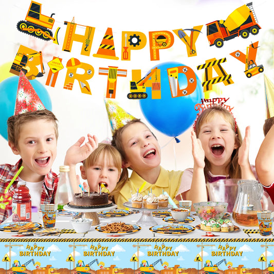 66pcs Construction Party Supplies Tableware Set-Construction Birthday Party Plates Cups Napkins Tablecloth Banner etc