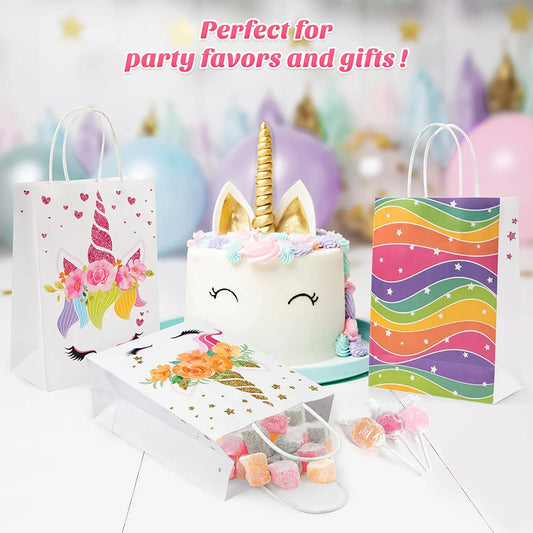 18 PCS Party Favor Bags for Girls Birthday Party Supplies, Reusable Paper Gift Bags for Kids, Goodie Candy Treat Bags with Handles for Unisex Birthday Baby Shower Decorations