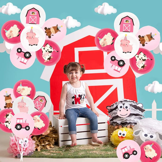 36Pcs Pink Farm Animal Balloons Girls, 12 Inch Cow Sheep House Pig Car Donkey Latex Balloons Farm Animal Birthday Party Supplies Pink Farmhouse Baby Shower Decorations for Kids Barnyard Themed Party