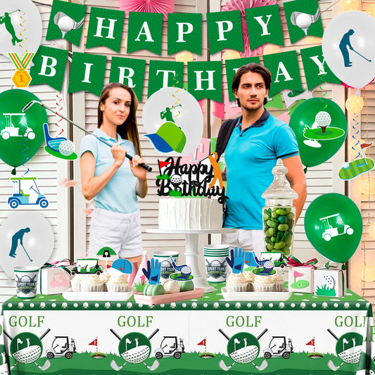 Golf Party Decoration,159PCS Sports Tableware Golf Plates and Napkins Party Supplies Include Happy Birthday Banner Tablecloth